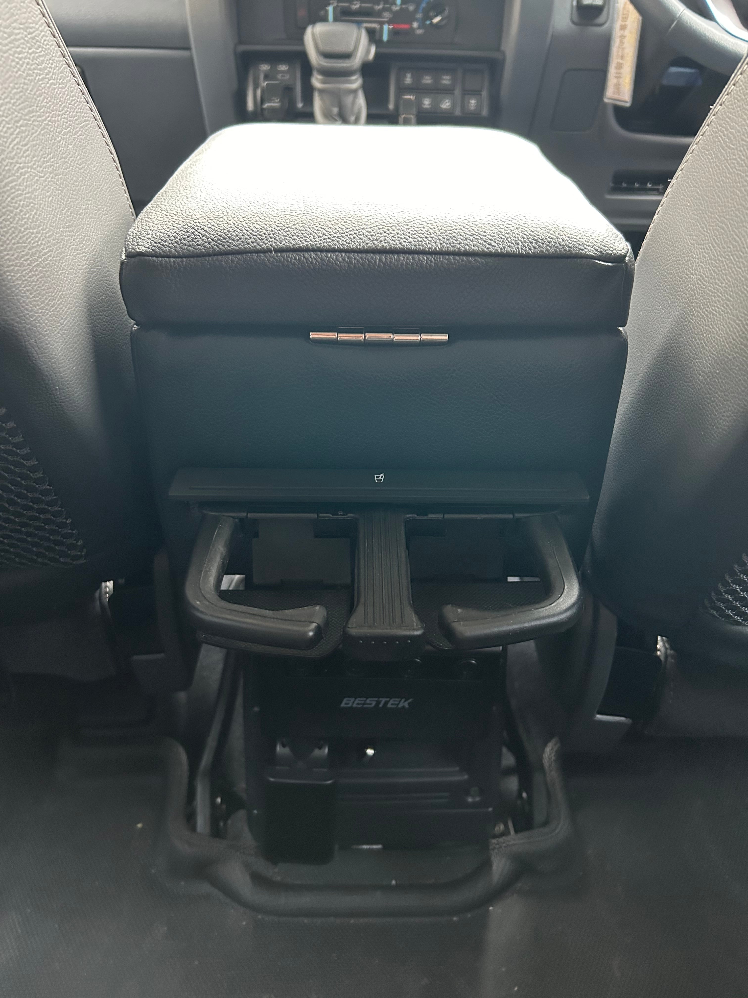 運転手に合わせた前後20mmのアームレスト位置調整可能