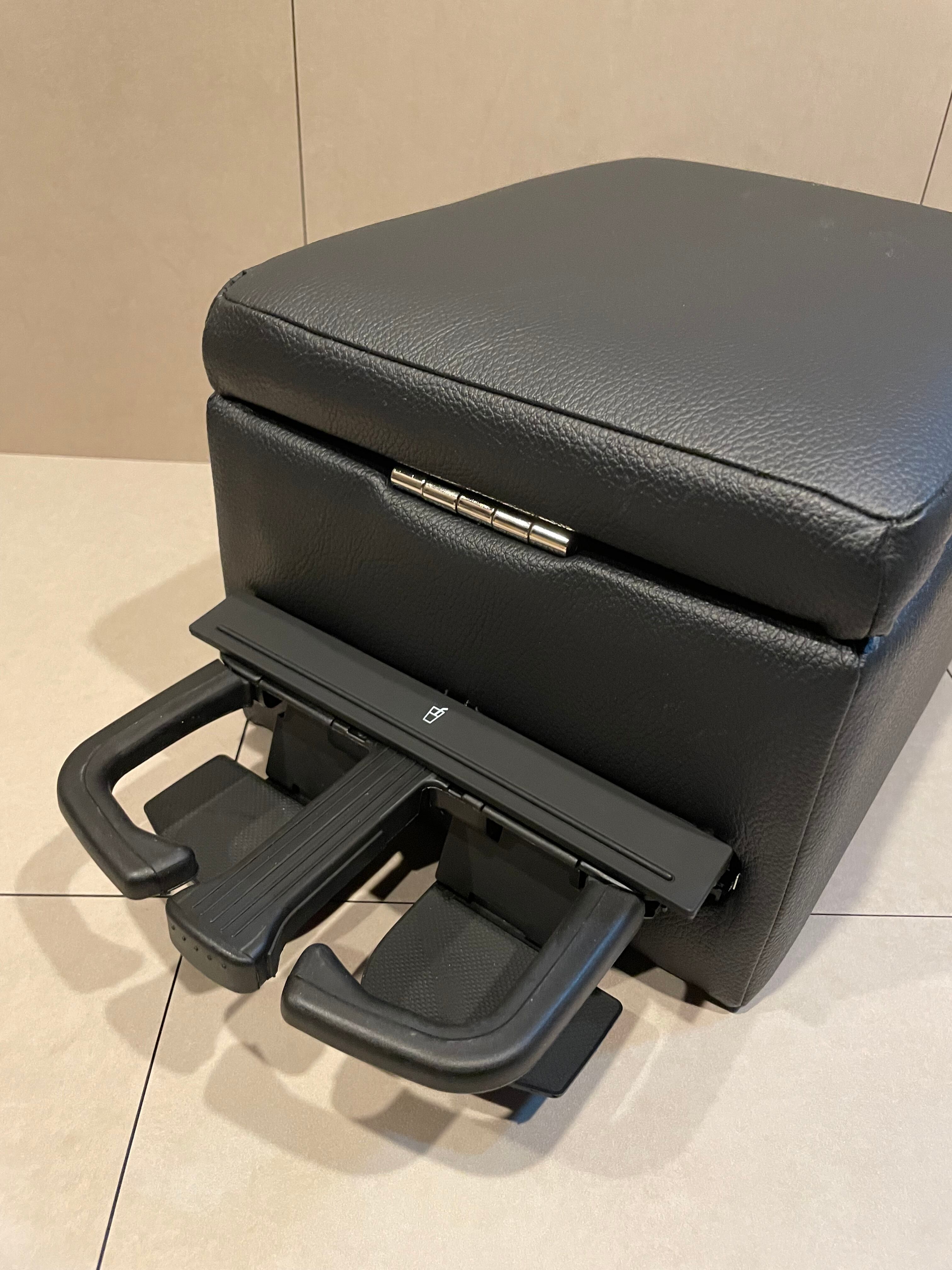 ドリンクホルダーのドリンクマークのプリントされた蓋を立ち上げ中にある中央付近のパーツを押すことで引き出されますが、スムースに動かない場合は中央のパーツを引いて下さい